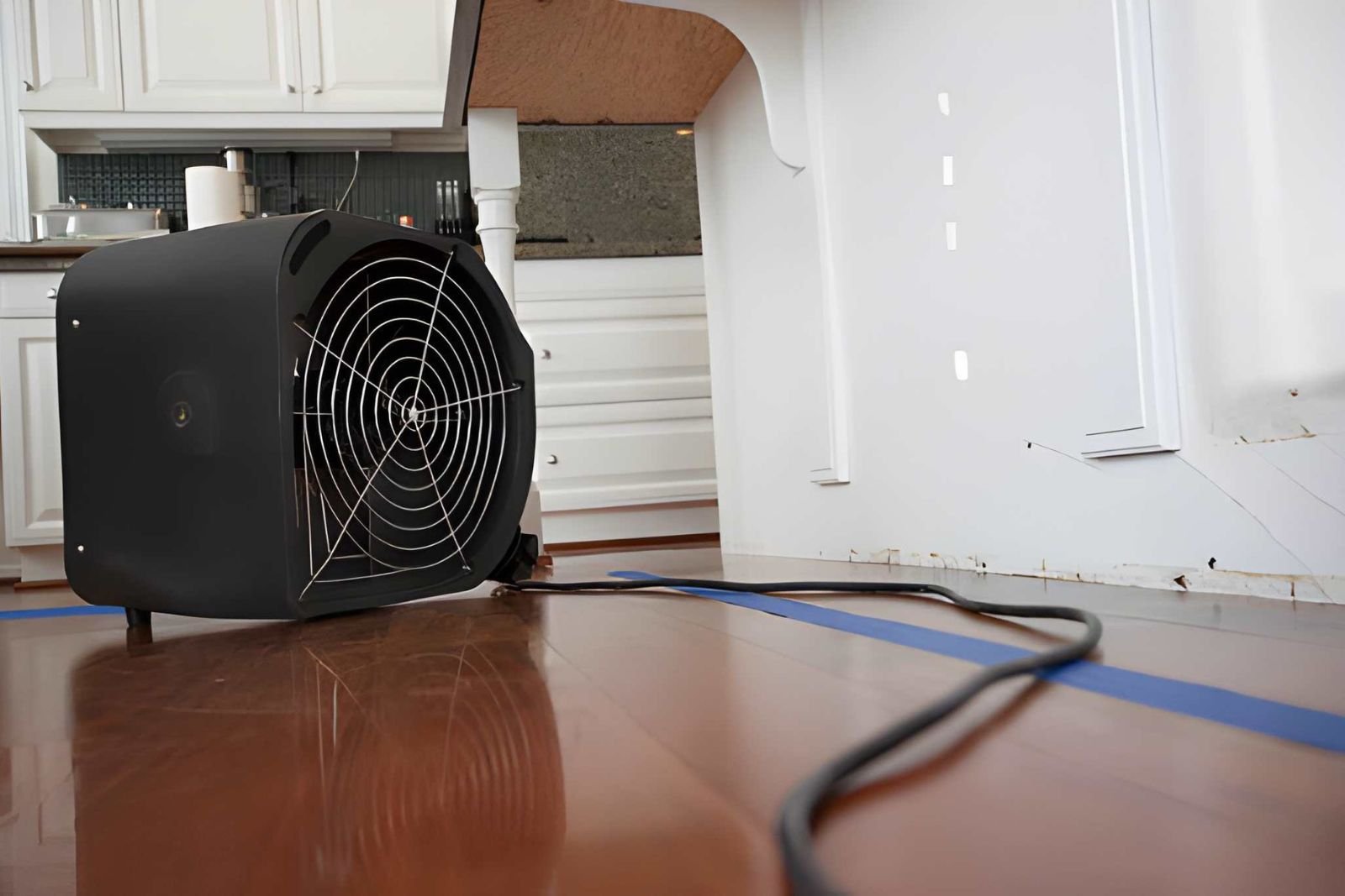 Crew members start extraction and set up fans. We use HEPA filters to stop dust from moving through your home.